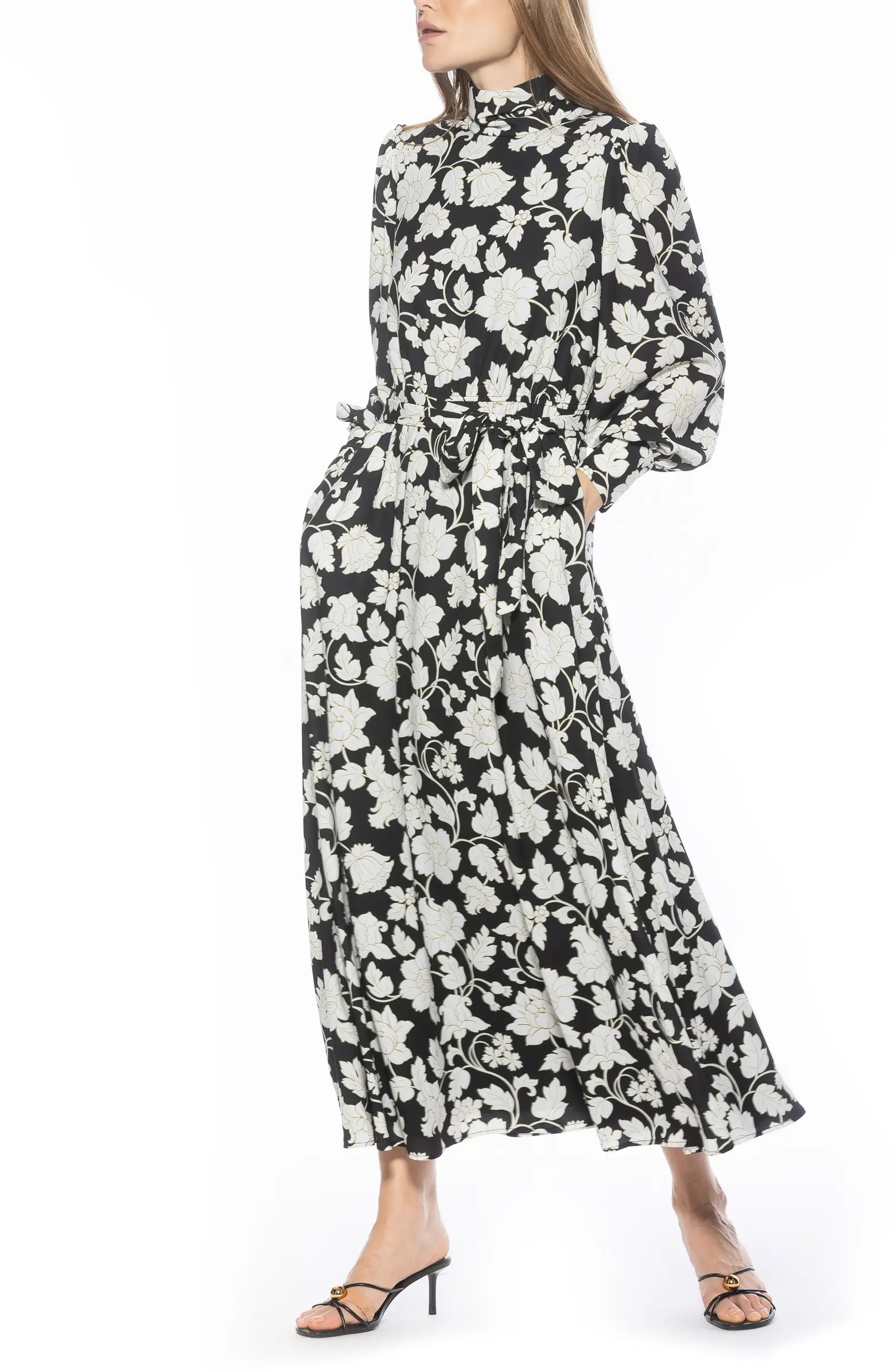 Elevate your wardrobe with the Saliah Floral Long Sleeves Dress, a timeless piece designed for effortless elegance. This flowy, feminine maxi dress features a soft mockneck with delicate shirring, paired with dramatic blouson sleeves that add graceful movement to every step. The elastic waistband softly defines the silhouette, while the full maxi skirt creates a beautifully classic shape.