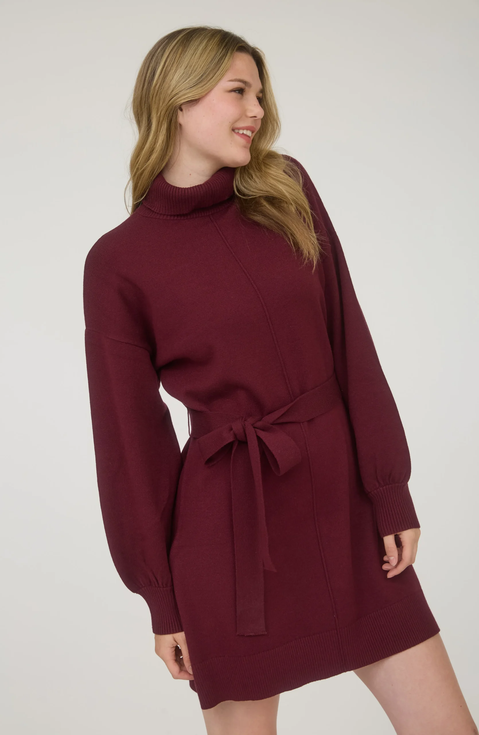 Mini-length sweater dress designed for a chic and modern look